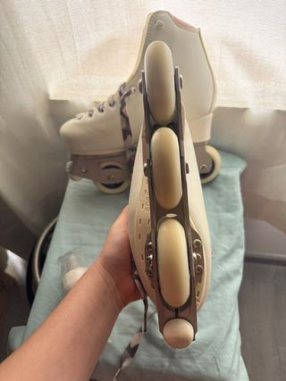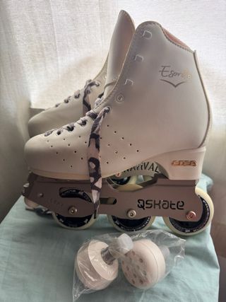 2 tipos de patines. Patines Rosas, talla 37/38. 7,5€ Patines patinaje artístico blancos 35/36. 10€