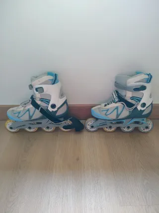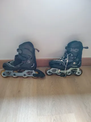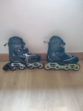 Patines en línea Oxelo apenas usado como se puede ver en las ruedas que se encuentran en perfecto estado y ruedan muy bien. Talla ajustable 35-38. Se venden tal como se ven en las fotos.