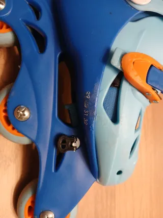 Patines en línea de color azul y detalles en naranja. Son ajustables para adaptarse al crecimiento. - Tallas: 29-32 - Diseño en dos tonos de azul - Cierres de velcro y hebilla