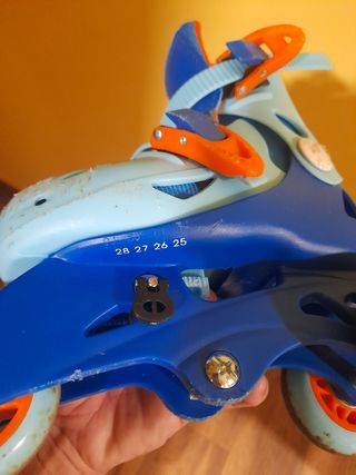 Vendo patines en linea del 28 al 32 más o menos. La tira del izquierdo a veces se puede abrir pero no impide patinar porque el pie sigue muy sujeto. Muy bien rodamiento y en muy buen estado el freno.