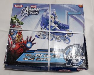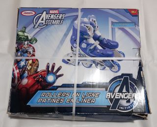 Patines en línea con diseño de los Vengadores de Marvel. Perfectos para los fans más jóvenes. Talla ajustable 34-37. Nuevos, están sin estrenar. La caja tiene el precinto pero está un poco deteriorada como se puede ver en la foto. - Diseño inspirado en los Vengadores. - Talla ajustable para mayor comodidad. - Cierre de seguridad para un ajuste firme.
