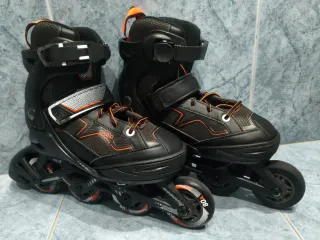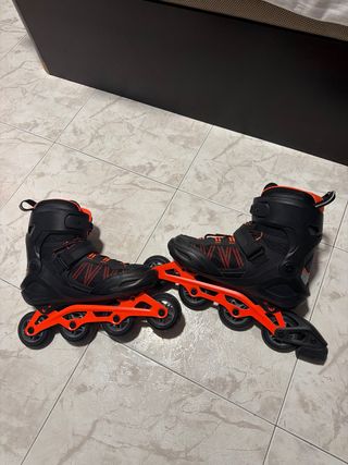 Patines en línea negros y naranjas