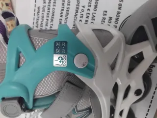 Se venden patines en línea Oxelo en talla 38. Están en perfecto estado. Se han usado en un curso de 20 clases en pista interior así que el estado es muy bueno. - Color verde menta y negro. - Cierre con cordones, velcro y hebilla. - Ruedas de 80 mm. - Se incluyen coderas, rodilleras y muñequeras en buen estado - Se incluye bolsa para transporte patines