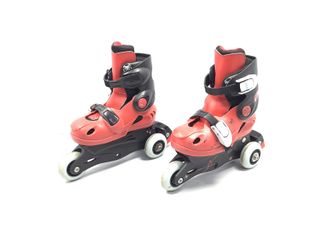 Patines en línea para niños o niñas, perfectos para iniciarse en el patinaje. - Diseño en negro y rojo. - Cierre de velcro y hebilla. - Ruedas de 70mm.