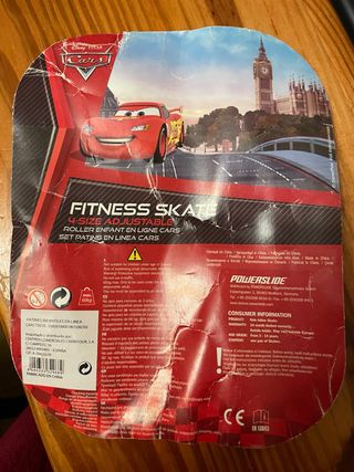 Patines en línea ajustables con diseño de Cars. - Talla ajustable en 4 posiciones. - Peso máximo soportado: 60 kg. - Recomendado para edades de 3 a 14 años. - Fabricado en China.