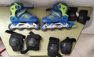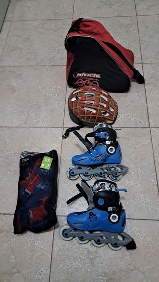 Están perfectos, poquísimo uso. Casco,coderas y rodilleras. Extensibles desde la talla 34 a la 36. Marca Oxelo todo el conjunto. Pregunta por separado.Comprado en decathlon. El precio es por todo el lote.