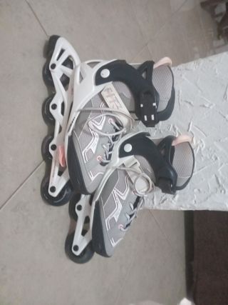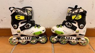 Patines en línea de 4 ruedas seminuevo con 2 opciones de color, blanco o negro.