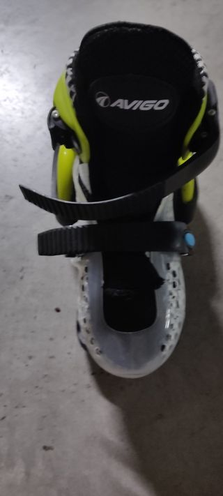 Patines infantiles Avigo, como nuevos,solo 1 puesta ,Ideales para principiantes. - Sistema de ajuste para adaptarse al crecimiento del pie. - Diseño llamativo en colores verde lima y blanco. - Ruedas en buen estado.