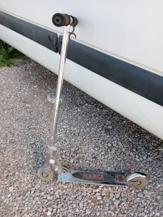 Patín infantil de la marca MARCA, ideal para paseos y diversión. - Estructura metálica plateada. - Ruedas de goma. - Puños de espuma para un mejor agarre.