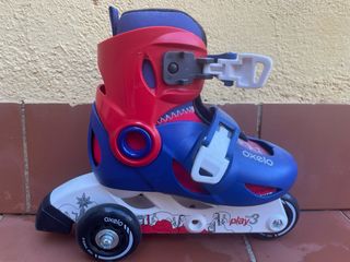 Patines infantiles de la marca Oxelo en color azul y rojo. Perfectos para iniciarse en el patinaje. - Diseño ajustable para adaptarse al crecimiento. - Cierre de velcro y hebilla para mayor seguridad. - Ruedas de alta resistencia.