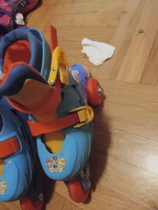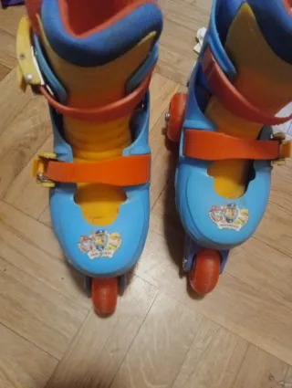 Patines ajustables con diseño de Paw Patrol. - Color azul con detalles naranjas y amarillos. - Cierre de velcro y hebilla.