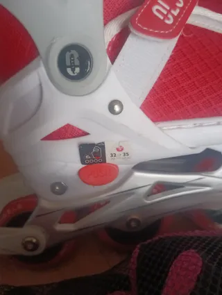 Patines en línea talla 33. Para mas talla visita mi perfil - Diseño con detalles en rojo y blanco. - Cierre de velcro y hebilla. - Ruedas de patinaje.