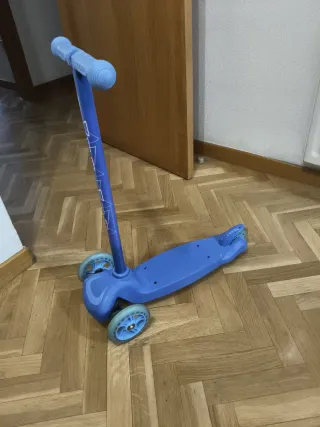 Se vende patín infantil de tres ruedas en color azul. - Manillar ajustable. - Plataforma antideslizante. - Ruedas de goma.