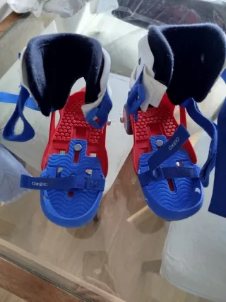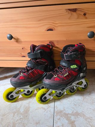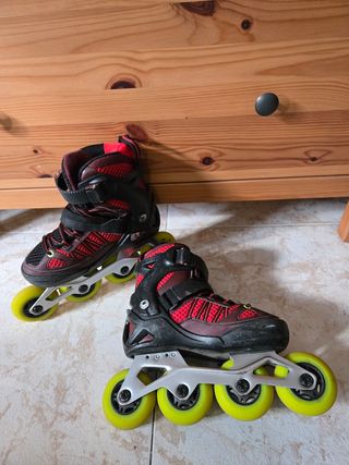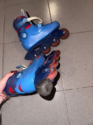 Patines en línea niño Oxelo azul y rojo. TALLA EU: 31-32. Un pelín desgastados por algunos lados. - Ruedas de poliuretano. - Bota ajustable. - Sistema de ventilación.