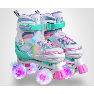 - estabilidad, confort y estilo - Diseño brillante con estrellas y arcoíris, ruedas luminosas automáticas sin necesidad de pilas. - Ajuste perfecto con tallas regulables XS(23-27), S(28-31) y M(32-35), adaptándose al crecimiento. - Rodamientos de precisión ABEC-7 para un deslizamiento suave y seguro en cualquier superficie. - Materiales premium: acolchado blando, tejido antibacteriano y ecopiel para máximo confort. - Sistema de cierre fácil Seguridad primero: recuerde el uso de protecciones infantiles como casco, rodilleras y coderas. Supervisa a los pequeños durante sus primeras prácticas y elige superficies seguras para patinar.