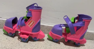 Patines infantiles de la marca Playskool en llamativos colores rosa y morado. - Diseño ajustable para adaptarse al pie. - Adaptables según el progreso - Ruedas resistentes para deslizarse.