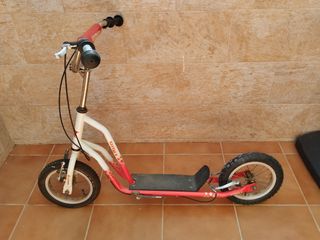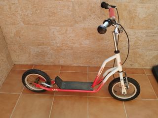 Patín todo terreno para niños, en buen estado. - Ruedas grandes para una conducción suave. - Estructura de metal resistente. - Diseño atractivo en rojo y blanco. - Ideal para niños que buscan aventuras.
