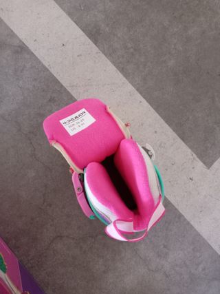 Patines infantiles de Decathlon en color rosa y morado. - Diseño ajustable para adaptarse al crecimiento. - Cierre de velcro y hebilla para mayor seguridad. - Ruedas resistentes para un deslizamiento suave. talla 26/28