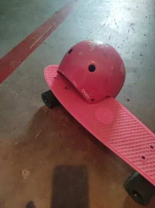 Patín infantil rosa con casco