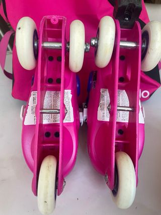 Patines de iniciación niña, son muy cómodos a mi hija le encantaban. Tallas 26 a 29. Tienen los frenos bastante desgastados