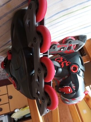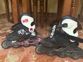 Patines oxelo talla 26-28, usados pero en buen estado, las ruedas están impecables y pueden cambiar de posición dejando una alante y dos juntas atrás para facilitar las primeras veces.