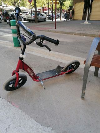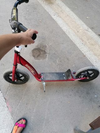 Patín infantil de color rojo, en buen estado. Ideal para niños. - Estructura de metal resistente. - Ruedas de goma. - Manillar cómodo.Ruedas grandes Para poder utilizar por caminos. No envío solo lo vendo en mano. Tlf 616340315...enviar el wuasat y yo contesto