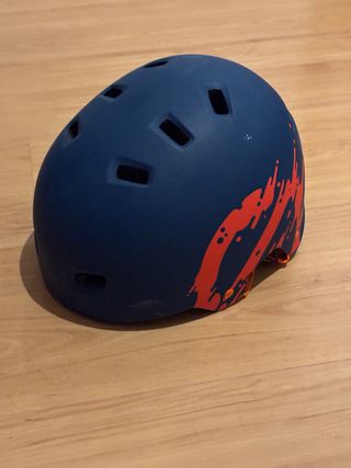 Casco de protección para niños, ideal para patinar o montar en monopatín. Su diseño es llamativo y moderno. - Color azul marino. - Detalles gráficos en rojo. - Múltiples ventilaciones. - Se ha usado muy poco. Está casi nuevo. - También vendo un monopatín/skate, por si quieres comprarlo en lote. Lo entrego en mano en Alcorcón o en Vallecas (Madrid).