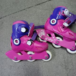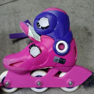 patines de niño o niña,con poco uso,tambien se incluye la bolsa de transporte,patines de aprendizaje, estan montados con una rueda delante y dos atras,pero se puede poner con todas en linea talla 27-32
