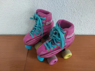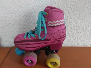 ¿Tienes a una niña (o niño también, solo faltaría), que quiere rodar por el mundo? ¿Necesitas que se mueva de forma más divertida y rápida? Estos patines te ayudarán a que descubra otras maneras de moverse y hacer ejercicio. Además, con ellos, podrás decirle aquello de que "Con paciencia y patines, se llega más lejos". - Cierre con velcro y cordones. - Ruedas de poliuretano. - Botín acolchado para mayor comodidad. - Bolsa de transporte. Se recoge cerca de la plaza de la Catedral de Barcelona. No se hacen envíos.