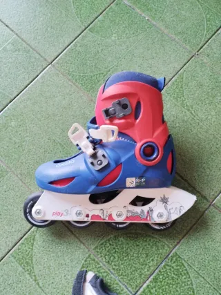 Patines en línea de color azul para niño o niña. -Talla ajustable 28-32 - Ruedas de poliuretano. - Cierre de velcro y cordones. - Evidentes marcas de uso, pero funcionan perfectamente.