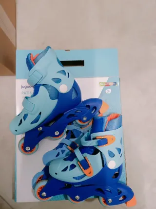 Se venden patines en línea de color azul, ideales para niños. - Diseño ajustable para adaptarse al crecimiento. - Cierre de velcro y hebilla para mayor seguridad. - Ruedas resistentes para un deslizamiento suave.