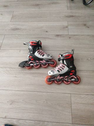 Patines en línea en buen estado para niño y niña, talla 29 a 32 de pie. Colores negro, gris y rojo Ideal para iniciarse