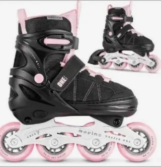 patines niña marca Mustang realizadas en material sintético ,se le kitan.las ruedas y se kedan.en.unos deportivos , llevan luces k se iluminan al rodar regalo casco y protecciones número 31