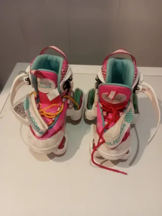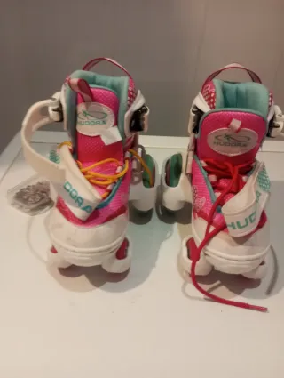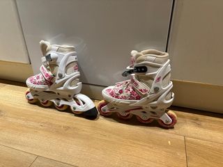 Patines en línea infantiles, ideales para principiantes. Están en buen estado y son de color - Color: Rosa y blanco - Diseño: Con detalles coloridos - Numero 26 27 28 29