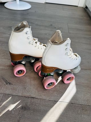 Patines infantiles en buen estado. Ideales para principiantes. - Color rosa y detalles negros. - Diseño moderno y atractivo. - Perfectos para iniciarse en el patinaje.