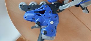 Patines en linea de iniciacion oxelo con una puesta,asique practicamente a estrenar,incluyo el kit de estabilidad.se pueden ver sin compromiso o envio por wallapop.extensibles de la talla 28 a la 30.
