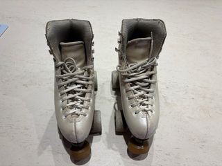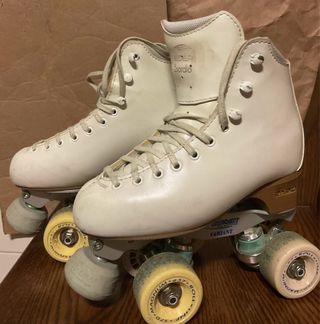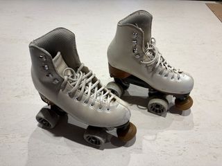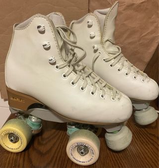Patines blancos de la marca Riedell en talla 31. Perfectos para iniciarse en el patinaje. - Diseño clásico de bota alta. - Cordones blancos. - Ruedas de patinaje.