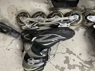 muy buen estado pero bastante usados. muy cuidados y protegidos siempre con fundas. bota risport Gemma T240 plancha STD T14 frenos roll line, tienen 1año y aún valen, pero bastante gastados. ruedas STD muy gastadas, hay que cambiarlas