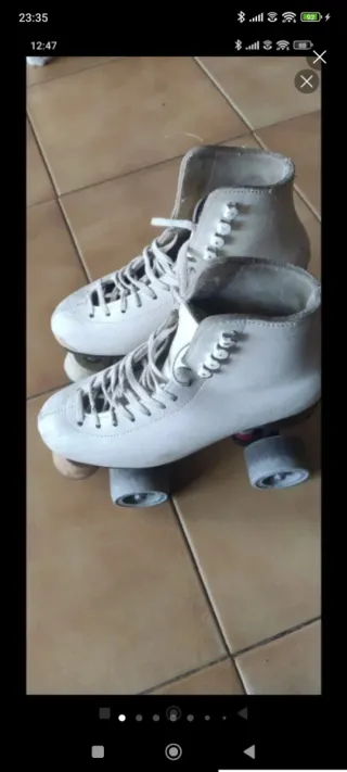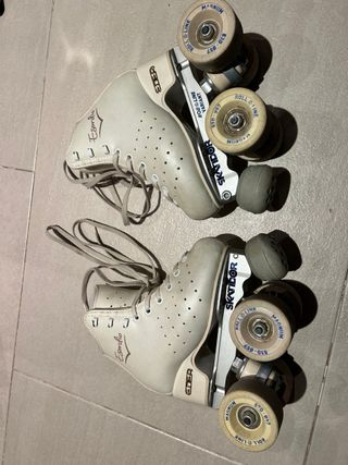 Se venden patines profesionales de segunda mano en color blanco. Ideales para patinaje. Números 34 y 36 - Diseño de bota alta. - Cierre con cordones. - Ruedas de patinaje.