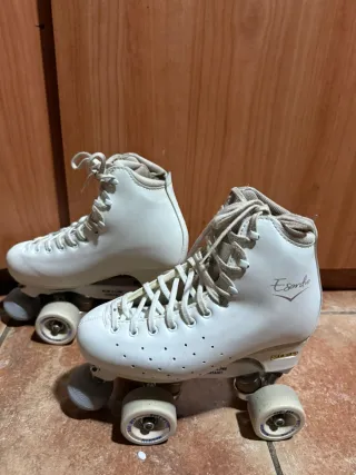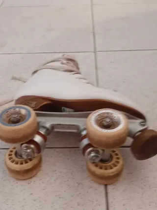 Patines de patinaje artístico ROCES NIRVANA originales en color blanco, para quienes valoran la calidad, el confort y la estética sobre el hielo. - Cierre con cordones para un ajuste seguro - Detalle del logo ROCES en dorado 🛼 Uso mínimo y cuidado exquisito • Utilizados únicamente 8 veces, sesiones de unos 45 minutos • Conservados con mimo, siempre secos y guardados correctamente • Cuchillas pulidas por profesional, listas para ofrecer un deslizamiento preciso y elegante • Incluyen caja original • Marca Roces: referencia en patinaje • Acabados elegantes y femeninos • Rendimiento óptimo desde el primer día