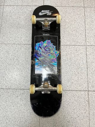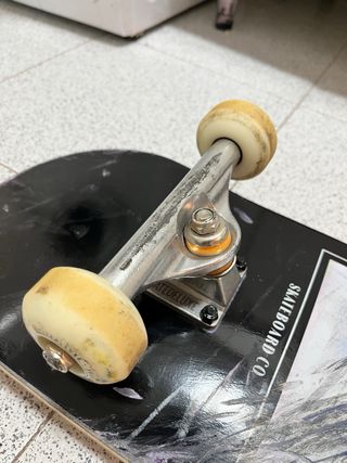 Skate completo Skatedeluxe en buen estado, listo para usar. Tabla de 8 pulgadas. - Rodamientos abec 5 - Ejes y ruedas incluidos. -Ruedas poliuretano 52m Lo compre hace 3 meses nuevo en Skatedeluxe, va perfecto. Lo vendo porque no puedo sacar tiempo para patinar. Tiene algunas marcas en la tabla y los ejes de grindar, pero solo es estetico.