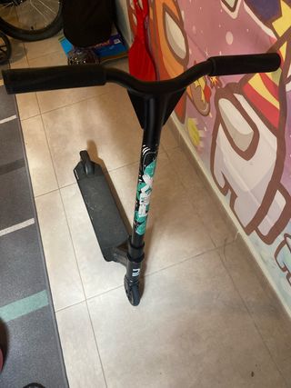 Patín profesional con manillar en forma de Y y puños azules. - Manillar de metal. - Puños de goma azul. - Base plateada. -poco uso -para freestyle -PRECIO NEGOCIABLE