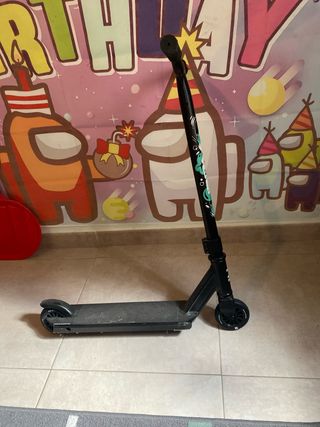 Patineta profesional de color negro, ideal para trucos y desplazamientos. - Manillar con puños de goma. - Plataforma antideslizante. - Ruedas resistentes.