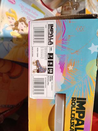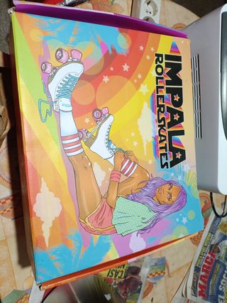 Patines Impala Rollerkates, nuevos a estrenar. Están en su caja original. - Son de color azul con estampado muy chulo - El diseño de la caja es llamativo y colorido. - Talla 38 - Ideales para principiantes y profesionales La caja tiene un desperfecto que se puede apreciar en las fotos.