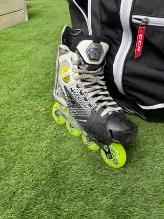 Patines de hockey sobre ruedas CCM Mission Fz.1 en muy buen estado. Ideales para jugadores profesionales. Tendrán unos 5 partidos, se notan las marcas en la puntera de la bota porque en cuanto roces dos veces con la valla ya se nota pero están perfectos de todo. PVP nuevos 550 euros - Modelo: CCM Mission Fz.1 - Ruedas en color verde lima - Bota en excelentes condiciones