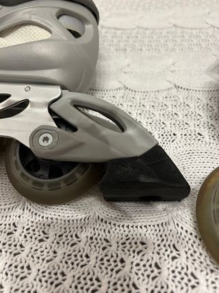 Patines en línea marca Rollerblade en color gris. - Cierre de velcro y hebillas. - Ruedas con rodamientos. - Diseño deportivo. los vendo porque ya no les doy uso, pero están muy bien