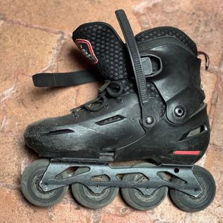 Se venden patines Rollerblade semirrígidos en talla 39. Diseñados para ofrecer comodidad y soporte, sobre todo para iniciarse o si los patines rígidos resultan incómodos. - Cierre con velcro y cordones. - Ruedas de alta durabilidad. - Diseño en negro y plateado.