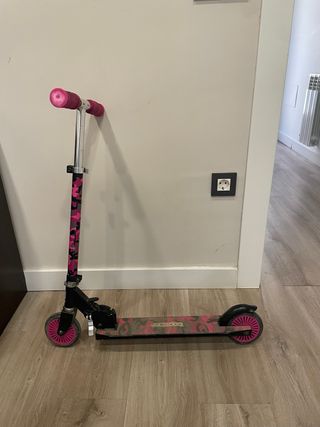 Patín infantil con un divertido diseño de camuflaje en tonos rosas. - Puños de goma para un mejor agarre. - Ruedas de color rosa. - Plataforma con estampado. - Manillar ajustable en altura. LOS PUÑOS ESTÁN UN POCO MAL DE AHÍ EL PRECIO. EL RESTO DEL PATÍN PERFECTO.