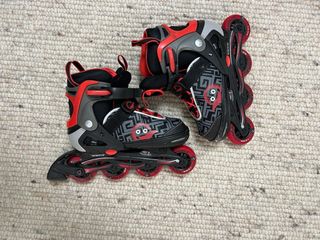 Se venden patines en línea con un diseño llamativo en rojo y negro. Son cómodos y seguros para patinar. - Ruedas rojas. - Cierre de velcro y hebilla. - Diseño con estampado gráfico. - Números 35 al 38. Extensibles - Protecciones gratis