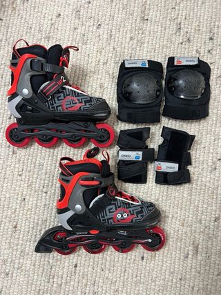Patines en línea 32/34 seminuevos, con rodilleras, coderas y myñequeras